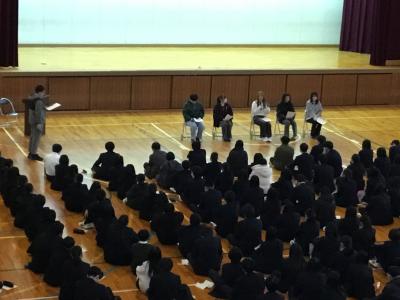 3月17日(月) 卒業生をパネラーとして迎え、在校生に対して話をしていただきました。