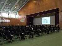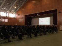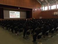 山元学年主任の話から始まり、教務課、生徒課、進路指導課、相談室、保健環境課それぞれの主任から、明倫で学校生活を送っていく上で知っておくべきことについて話がありました。その後には、交通安全教室・スマホ安全教室も行われました。