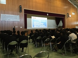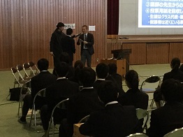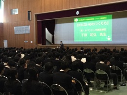 学校公開日の11月3日(土祝)の午後に、PTA主催の講演会として、株式会社ルバンシュの千田和弘社長に、講演していただきました。社長の高校時代や会社を興してから今日までの様々な体験から、今日の社会で企業がどのような人を求めているかといったことまで、具体的な事例も交えてとてもわかりやすくお話ししていただきました。途中、クイズで賞品までご用意してくださいました。生徒たちにとっても、普段聞くお話とは違った視点からのお話で、改めて色々と気づきがあったようです。千田社長、お忙しいなかどうもありがとうございました。