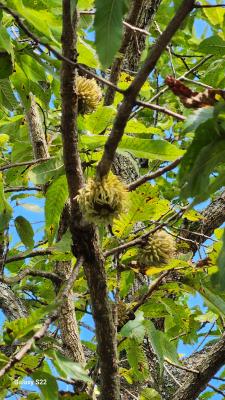 クヌギかアベマキなのか同定できませんが、まだ落ちてないどんぐりを見つけて大喜びしました。久しぶりに見ました。かわいいですね。