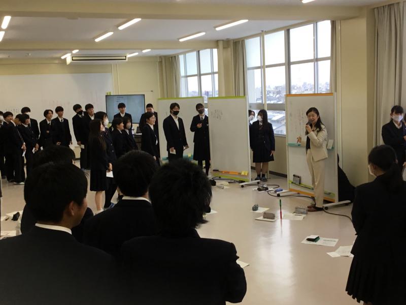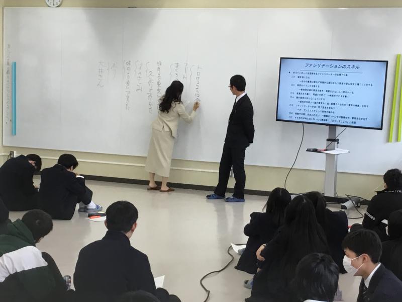 1月9日(木), 10日(金)に1年生各クラス2時間 株式会社シェヘラザードの 坂本 祐央子 さんにファシリテーション講座を行ってもらいました。
