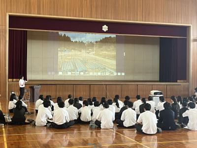 1月1日の震災後4月から故郷輪島に戻り、輪島高校の教員として1年間生活をしていた坂下先生。断水生活、震災の影響、発災後の生徒数の変化、校舎の使用制限についてなど現地に行かないとわからない現状を赤裸々に語られた。