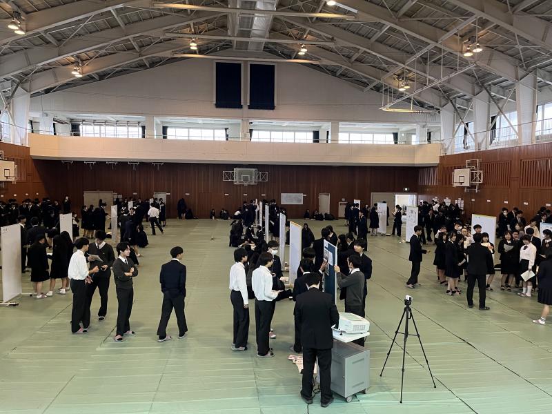 発表5分+質疑応答3分+コメント記入2分の10分を1班4回行います。聞いてくれるお客さんから質問や意見、感想を貰い最終発表や研究要旨作成に向けて修正していきます。また今年度は司会進行やタイムキーパーなどすべて生徒たちだけで行いました。