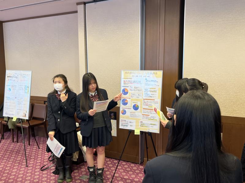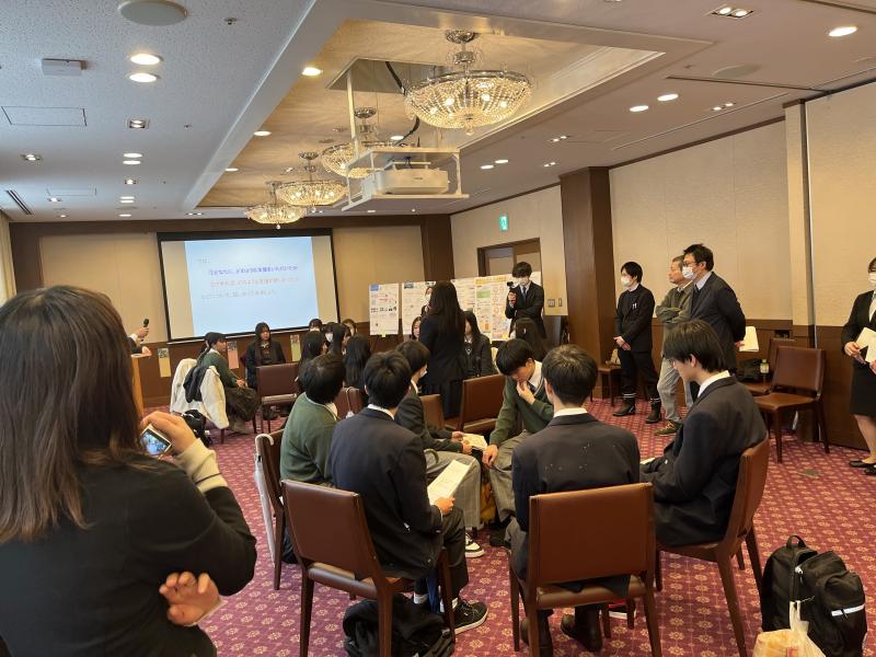 ・他の班の人やメンバーが前を向いて話しているのを見て、こういった場に来ることの大切さを感じました。想像よりも暑い室内で大学の先生方の熱意にも押されましたし、考えることの必要性も感じました。自分達がやってきたことは無駄じゃないなぁと胸がいっぱいになりました。本当に緊張もして、恐怖に似た心臓の拍動に前を向くのもやっとでしたが、班の人とチームで頑張れたんじゃないかなと思います。行ってよかったと思いました。