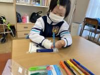 今年度は赤団白団がそれぞれの思いを込めた団旗を作ることになり、好きなキャラクターと体育祭への意気込みを紙に書きました。各団の生徒全員の紙を貼り合わせて団旗が完成します。どのような団旗に仕上がるか、とても楽しみです♪