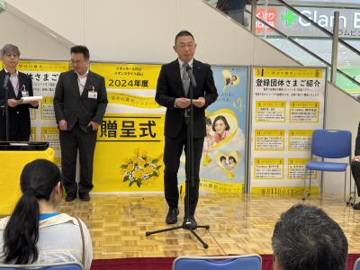 2025年5月21日 14時57分5月17日(土)イオンモール白山で、イオン幸せの黄色いレシートキャンペーンギフトカード贈呈式が行われました。
