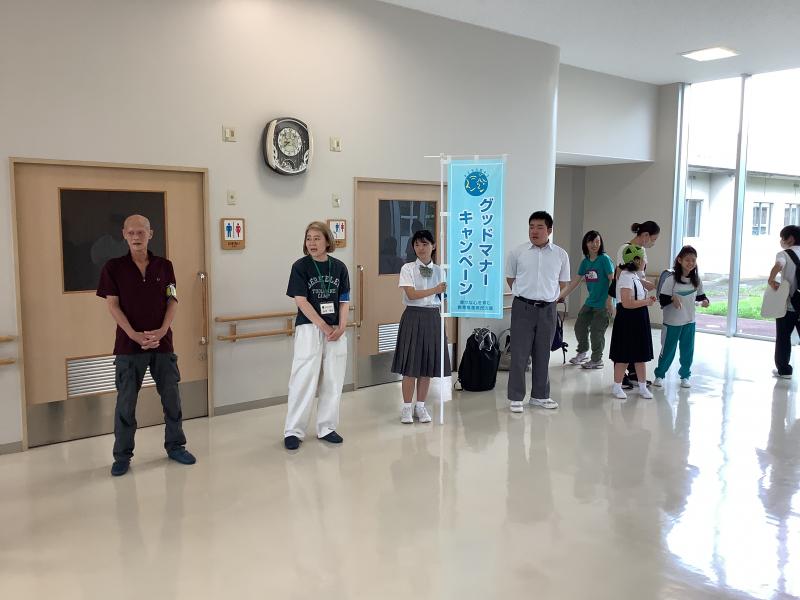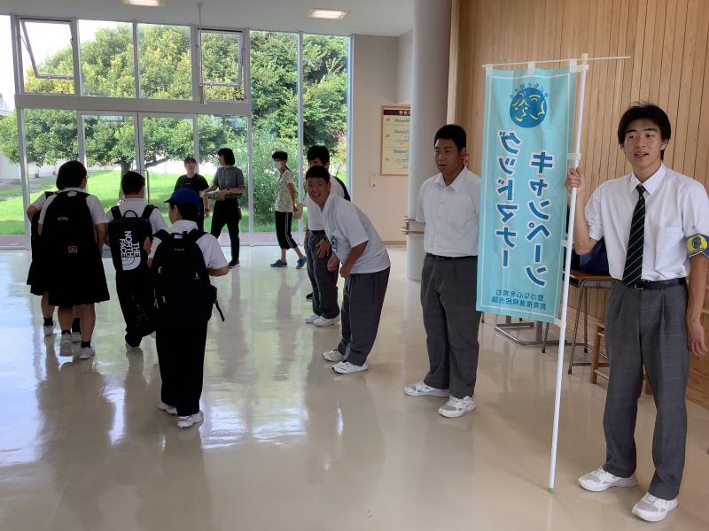 9月8日から9月12日の5日間、前期児童生徒会のメンバーとPTAの方にも参加していただき、朝の登校時間に挨拶運動を実施しました。挨拶運動中、児童生徒会以外の児童生徒も「ぼくも参加したい!」と、一緒に参加し、元気な「おはようございます!」の挨拶が響きわたっていました。