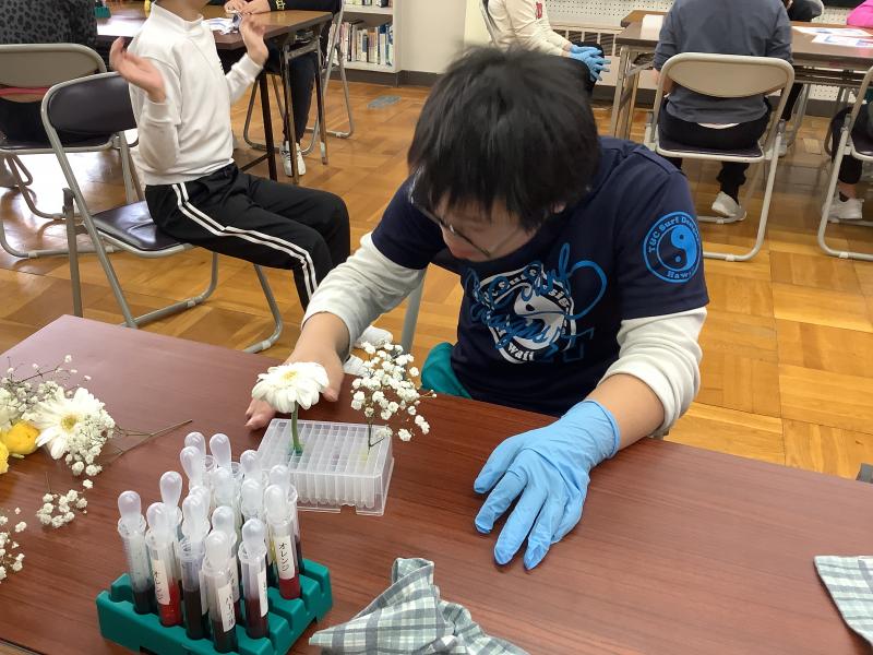 石川県立大学実験教室「レインボーフラワーをつくろう」(小学部6年)