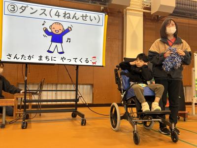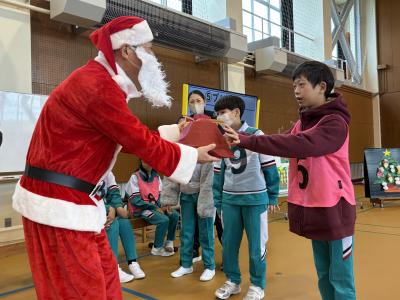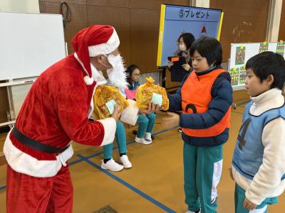 冬のつどい(高学年) 2025年12月17日 14時40分 12月15日(月)に冬のつどいを行いました。4年生はダンス、5年生は演奏、6年生はゲームのだしものをしました。サンタさんからプレゼントを貰えて嬉しそうでした。