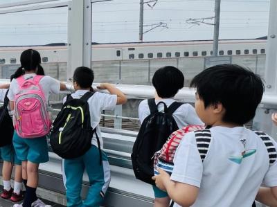 新幹線がすごく早いスピードで通ると、みんな大興奮でした。