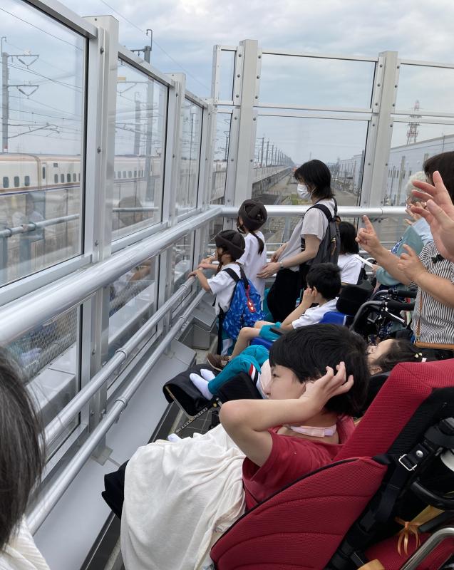 新幹線がものすごいスピードで通り過ぎ、みんなびっくりしていました。