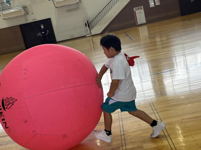 大きなボール、どこまで転がるかな。ヨーイドン。