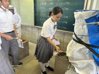 フードデザイン班、菓子製造班のメンバーも搾る様子を見学し、採れたてのハチミツを味見することができました!「すごく濃厚!」「サツマイモの味がする!」いろんな感想が飛び交っていました。