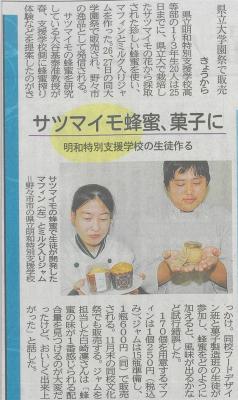 こちらの、「サツマイモの花から採ったハチミツ」を使った新製品、数に限りがありますが、本校文化祭でも販売する予定です。