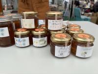 今年「しずく工房」で販売している「サツマイモの花のハチミツ」の瓶には、本校生徒が描いたイラスト等が貼られています。もしよろしければぜひ手に取ってみてください。