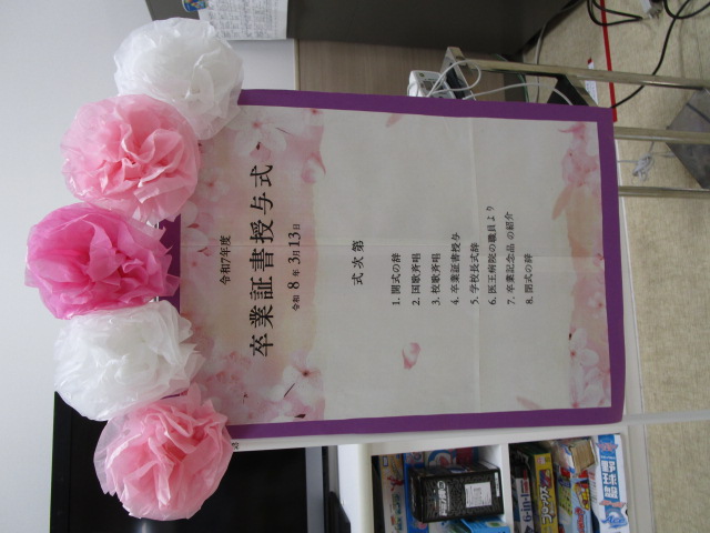 🌸Aさんの卒業式は、13日(金)の午後に、医王病院で行われました。
