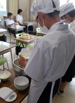 特に少食の生徒は、自分が盛ったごはんが200gに