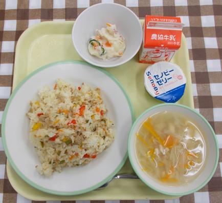 給食では具材を混ぜ込んであります。