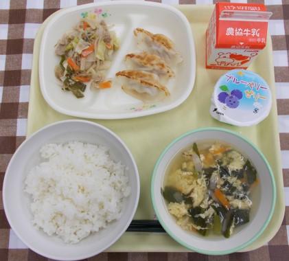 白ごはん、ぎょうざ、野菜炒め、中華スープ、
