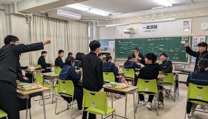 給食時間に教室をまわっていると、おかわりジャンケンで