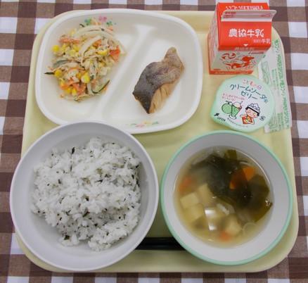 今日は生徒たちの好きなわかめごはんに、