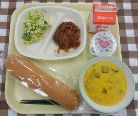 コッペパン、ハンバーグトマトソース、タルタルサラダ、
