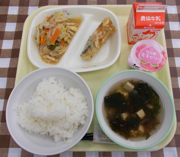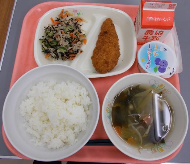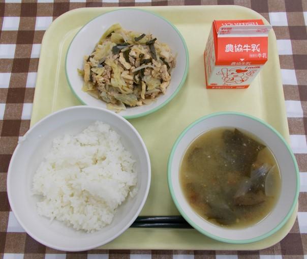 じゃがいもとわかめのみそ汁、牛乳