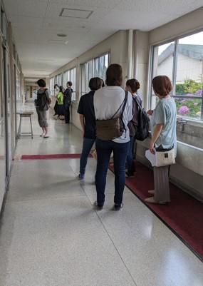 2年生の教室では、焼きそばのおかわりに列ができていました。