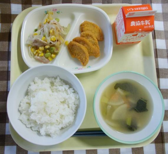 白ごはん、チキンナゲット、ジャーマンポテト、みそ汁、牛乳