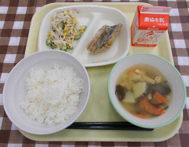 白ごはん、さばのカレー揚げ、切干大根のサラダ、