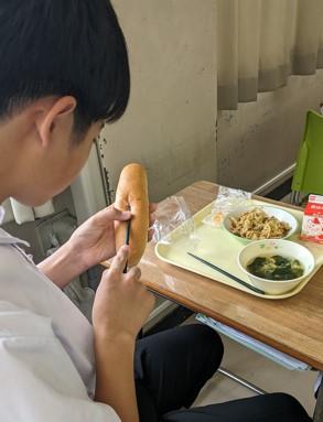 焼きそばパンにして食べている生徒もいました。