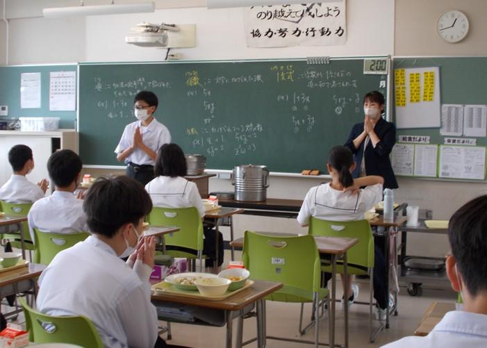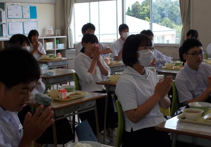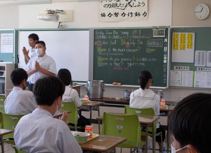 給食時間には、給食委員会の生徒から前日も結果を放送してもらっています。