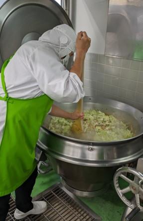 宝立小中学校の調理場から届いた食缶を運んでいる時から