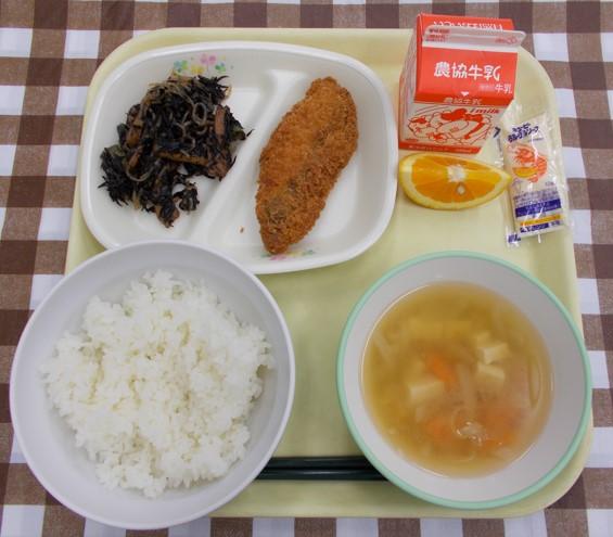 白ごはん、魚のタルタルソース、ひじきの炒り煮、みそ汁