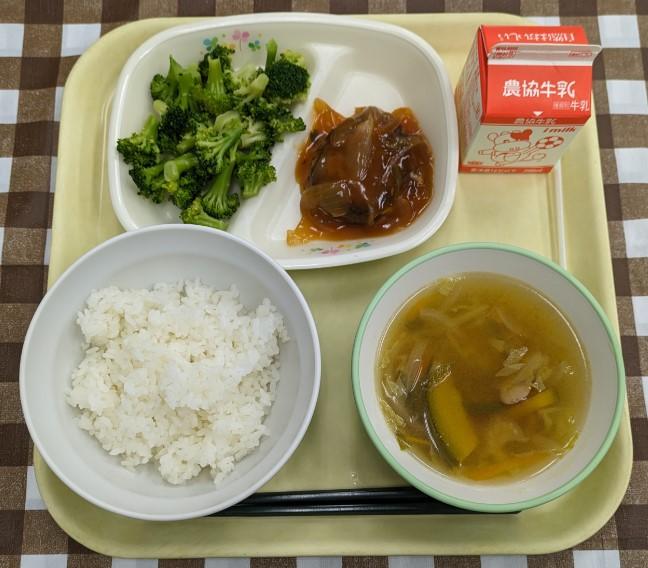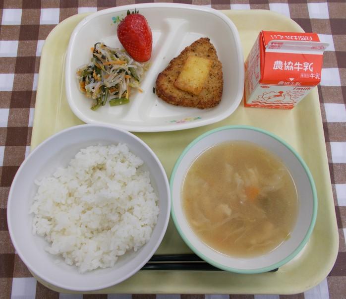 キャベツのみそ汁、牛乳