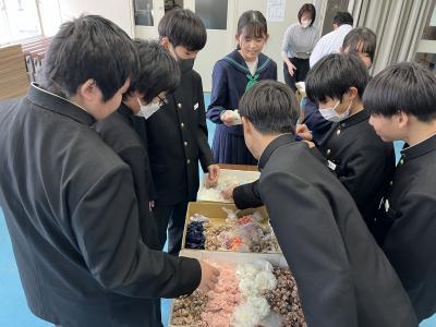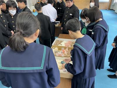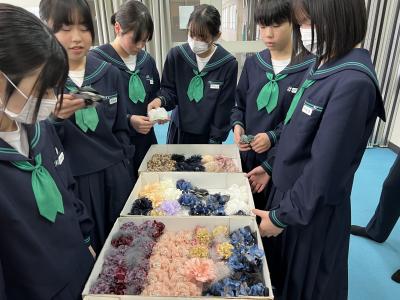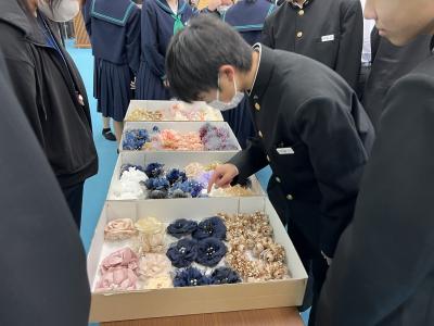 埼玉県で活動されている災害復旧サポートチーム方、上記プロジェクトをお世話いただきました。いつもお世話になっている家族や親せきの方へ、生徒が思いをこめて選んだコサージュに手書きのメッセージを添えて贈ることになっています。
