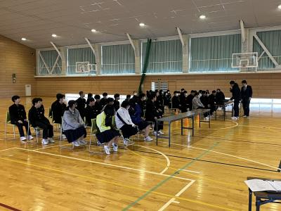 来週に公立高校学力検査(高校入試)と卒業式を控えた3年生。卒業式の全体練習が昨日から始まっています。この土日は、高校入試に向けて最後の追い込みをかけるとともに、体調や気持ちの調子を整えて受験に臨んでほしいです。