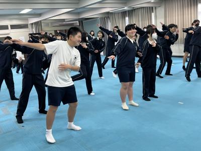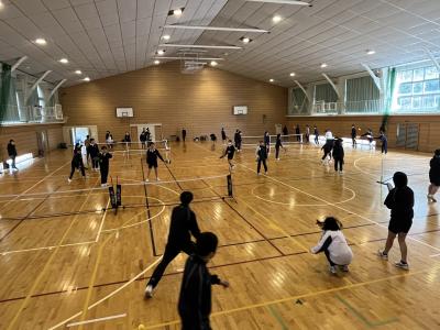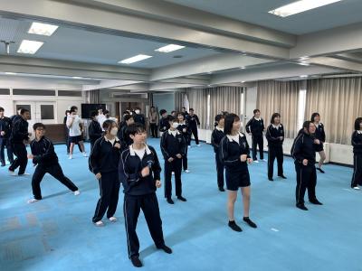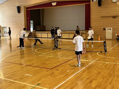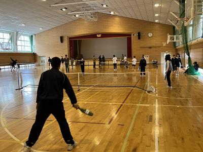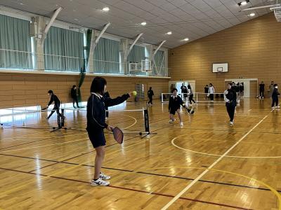 中学校では、1・2年生を対象に標記事業を実施しました。2回目ということもあり、ピックル・ボールでは各コートでラリーの応酬がありました。エアロビクスでは、笑顔で体を大きく動かすことを楽しんでいました。