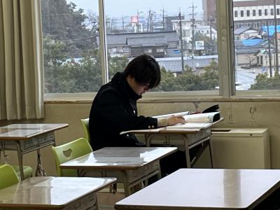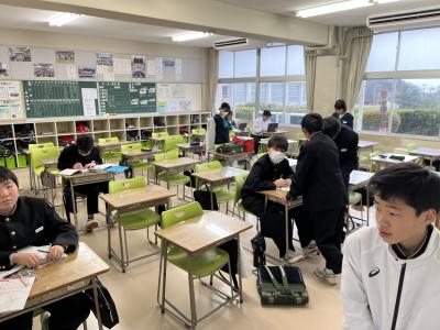 本日は、石川県公立高学力検査(高校入試)で、3年生が国語、理科、英語の入学試験に臨みました。明日は、社会と数学、面接等の試験があります。