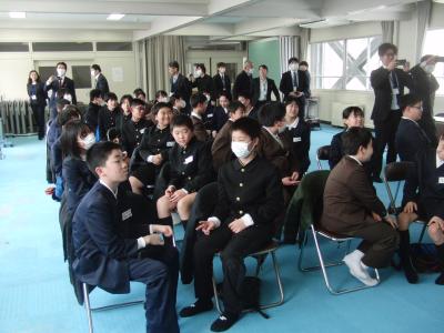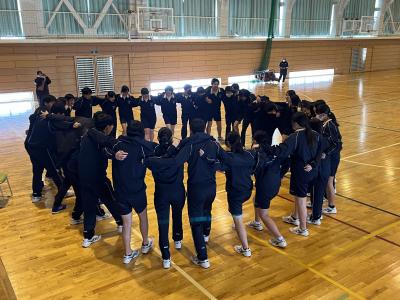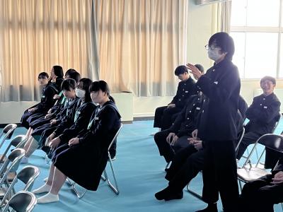 「震度6の地震の後、土砂災害が発生する」という想定で避難訓練を行いました。停電のため放送機器が使えない設定のため、二次避難先の指示を職員が手分けをして校舎全域に伝えてまわりました。生徒たちは、自信の身を守る一時避難、安全な場所へ移動する二次避難ともに、落ち着いて静かに行動することができていました。