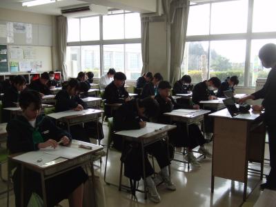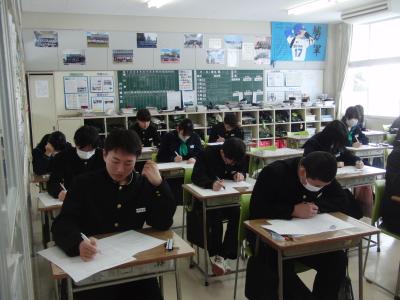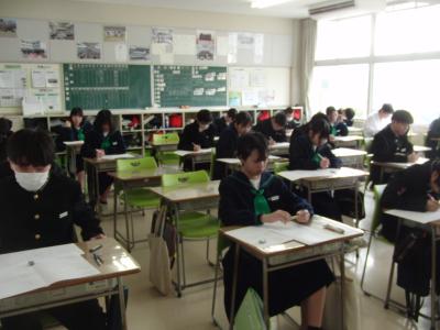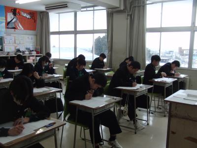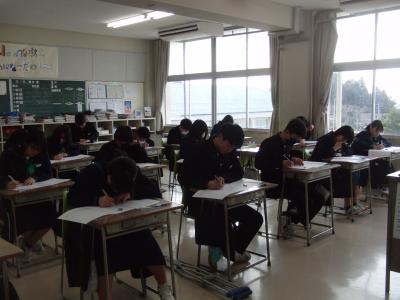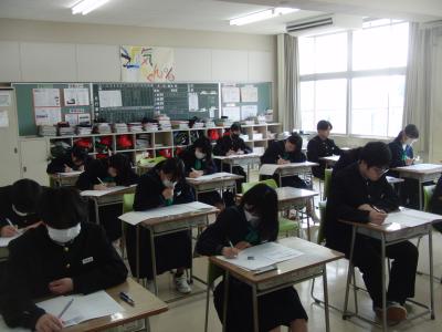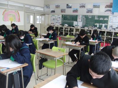 本日は、3年生が中学校最後の定期テストに挑んでいます。数名の生徒が公立高の推薦入試を受けており、離れた場所でそれぞれが持てる力を発揮しています。