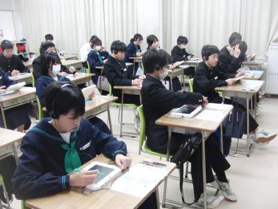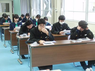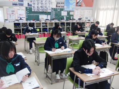 放課後や授業で面接練習をしています。一月後に迫った高校入試はもちろんのこと、就職時にも面接が課せられることがあります。生徒たちは緊張した面持ちながらも堂々と自己アピールをしていました。先生方の指導だけでなく、友達の様子を見てアドバイスし合ったり、友達の良い所を取り入れて練習に臨んだりと真剣な時間を過ごしていました。