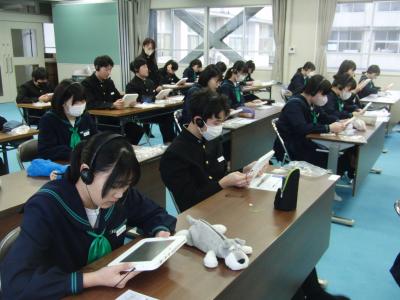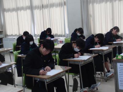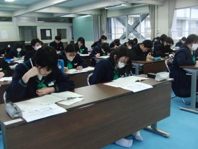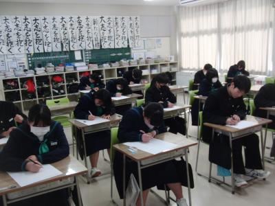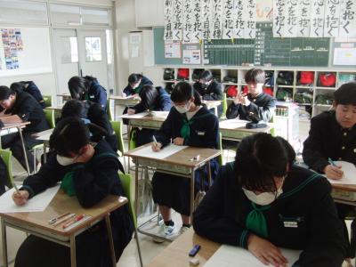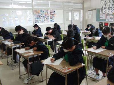3年生が、「読む・書く・聞く・話す」の4技能を測るテストGTECに挑戦しました。これは、市内の中学生の英語の技能の定着を確認するとともに、今後の指導に役立てるために、珠洲市教育委員会が実施しているものです。市内中学校の3年生全員が参加しました。
