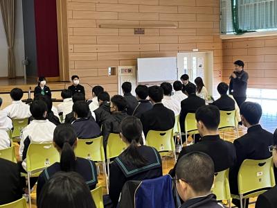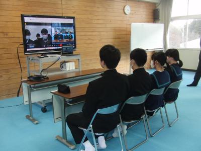 兵庫県小野市立旭丘中学校の生徒会役員との交流会をオンラインで行いました。緑丘中からは、受験を控えた3年生の生徒会役員に代わり、2年生4名が代表として意見を交換しました。まずは、お互い用意した質問でやり取りを開始しましたが、そのうち「防災や減災のために中学生ができることは何だろう」という内容に話が進みました。また、「現在ほしい支援は何か?」という問いかけに話し合いの時間を持った4名ですが、一人ひとりのニーズはそれぞれ違いました。最後に、緑丘からの「珠洲の現状を知ってほしい」というメッセージに対して、「ぜひ訪れて自分の目で確かめてみたい」という力強いメッセージが帰ってきました。貴重な機会をありがとうございました!