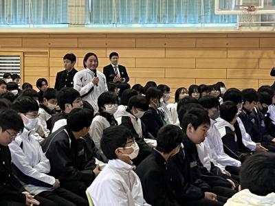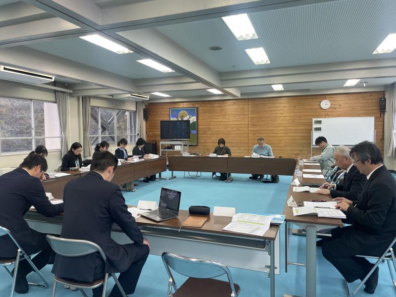令和6年度の最終自己評価を受けて、学校評議員の皆様やPTA会長、その他の関係者の皆様から、緑丘中学校の取組について、評価および改善点のご指摘をいただきました。8月の前期評価からこの間の、学校行事や課外活動での生徒の様子から、「地震があっても自信持て!」の文化祭テーマを引き合いに出されて「生徒たちは落ち着いている」「大変な経験をした子供たちは、人とのかかわり方が温かくなっているように感じる」など、生徒の成長に対する評価を頂きました。最後に、校長の「新しい挑戦と同時に、不易も大事にしながら学校経営を進めていきたい」という決意で会を閉じました。