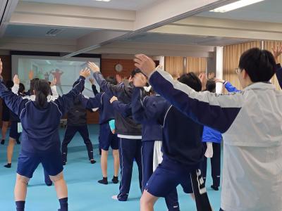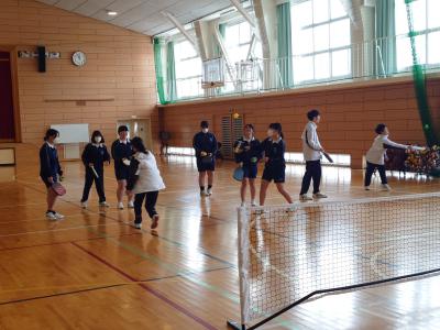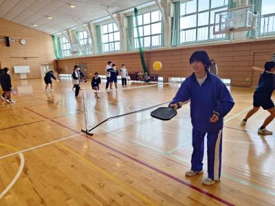 本日、標記の事業を実施しました。日本体育大学や金沢大学の先生方に来校いただき、指導をしていただきました。体力測定で一喜一憂し、エアロビクスを楽しんだ後、ピックルボール(卓球・バドミントン・テニスがもとになった年齢関係なく楽しめる新スポーツ)で、もう一汗流しました。仲間のスーパープレイに時折歓声があがっていました。これからも楽しめるように道具一式を寄付していただいたので、体育の時間や特別活動などで活用していきます。