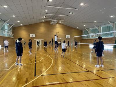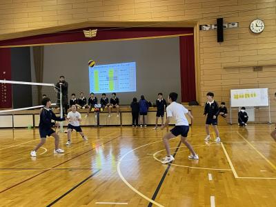 本日、3・4限目、3年生にとっては最後となるバレーボール大会がありました。3年生は個人技のレベルも高く、男子の3段攻撃は力強いものがあります。勝負にこだわりながらも和気あいあいと、ひざを赤くしながらも楽しい時間を過ごしたようでした。中学校生活ものこり1か月余り。高校入試・卒業に向けてよい時間を過ごしてくれることでしょう!