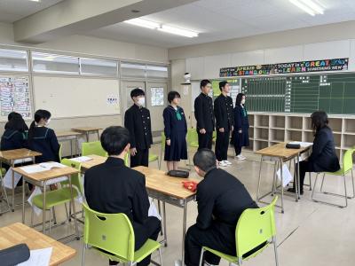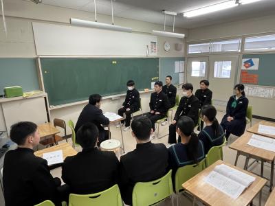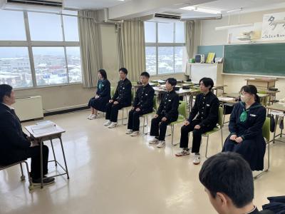 2025年2月6日 10時27分放課後や授業で面接練習をしています。一月後に迫った高校入試はもちろんのこと、就職時にも面接が課せられることがあります。生徒たちは緊張した面持ちながらも堂々と自己アピールをしていました。先生方の指導だけでなく、友達の様子を見てアドバイスし合ったり、友達の良い所を取り入れて練習に臨んだりと真剣な時間を過ごしていました。