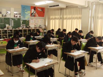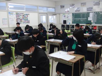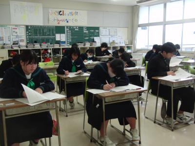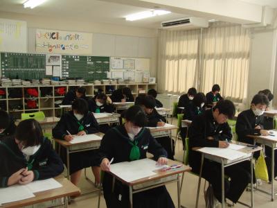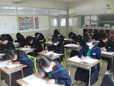 本日、2年生を対象に、国語・数学・理科の3教科のテストを実施しました。本日のテストは、11月までの学習内容の定着状況の確認と、それを踏まえた教員の指導改善を目的にしています。期末テスト明けの生徒たちでしたが、時間いっぱい集中して問題に取り組んでいました。