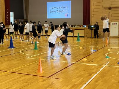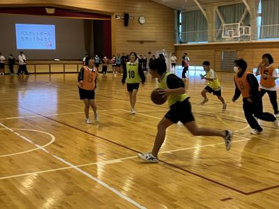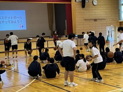 「アスリーチ」(スポーツ庁が推進するアスリート派遣等による体育授業等の充実・高度化の促進事業)で、元プロバスケットボール選手の小池真理子氏を講師にお招きし、1・2年生を対象にバスケットボール教室を開催しました。